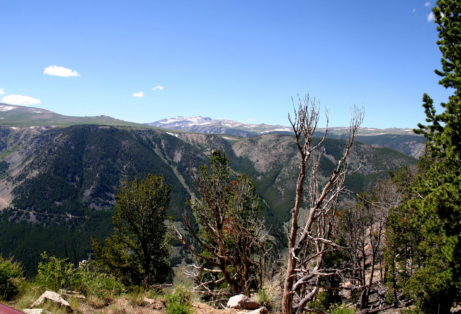 After reaching Cooke City, the road begins climbing and climbing. It goes up many switchbacks that I would have thought only appropriate for foot trails, past the tree line and up into the rocks. So many rocks that I could understand how the Rocky Mountains were named, even if I don't think it is a very creative name. I was amazed by trees growing in the rocks with no visible dirt to nourish them. How do they do it?